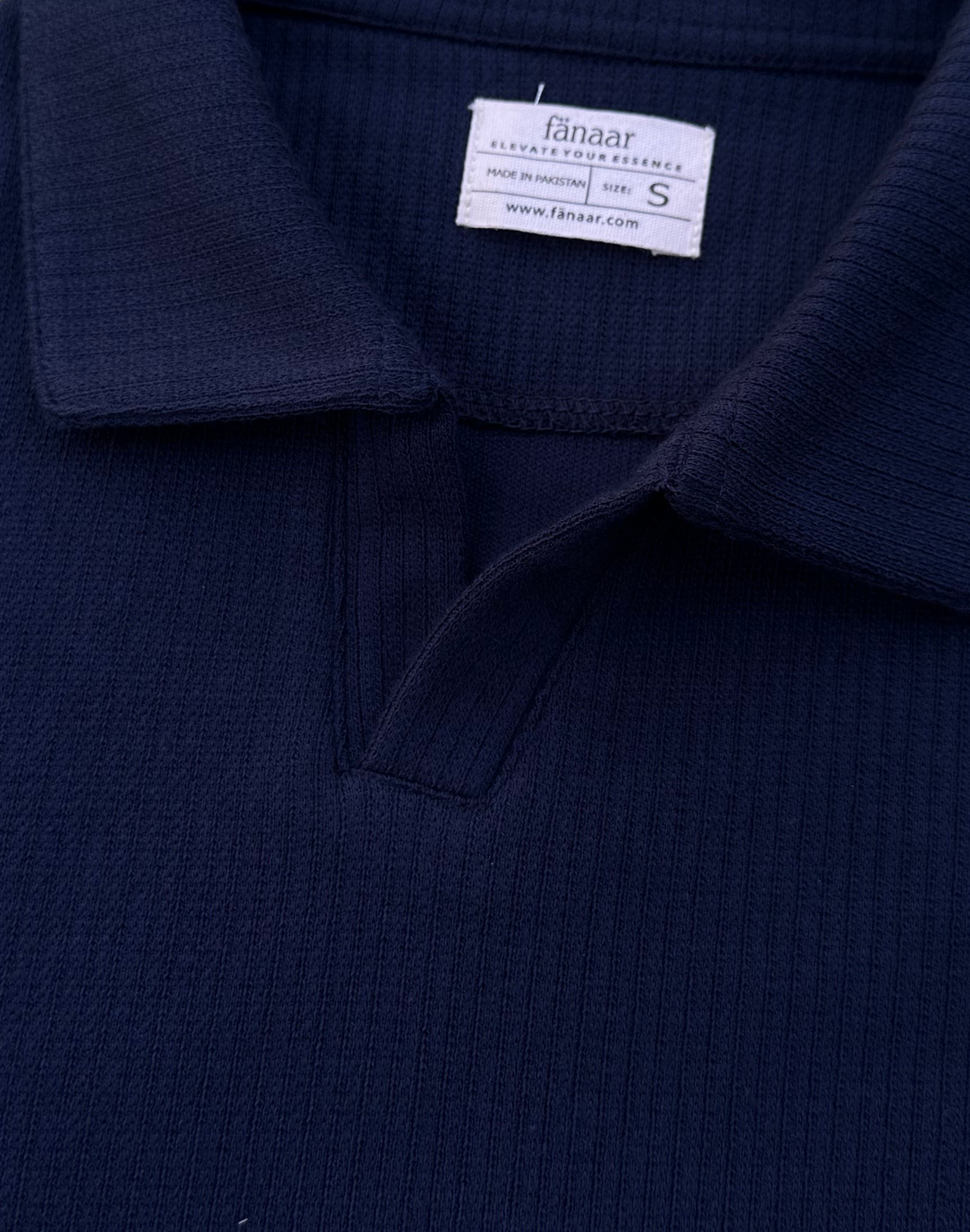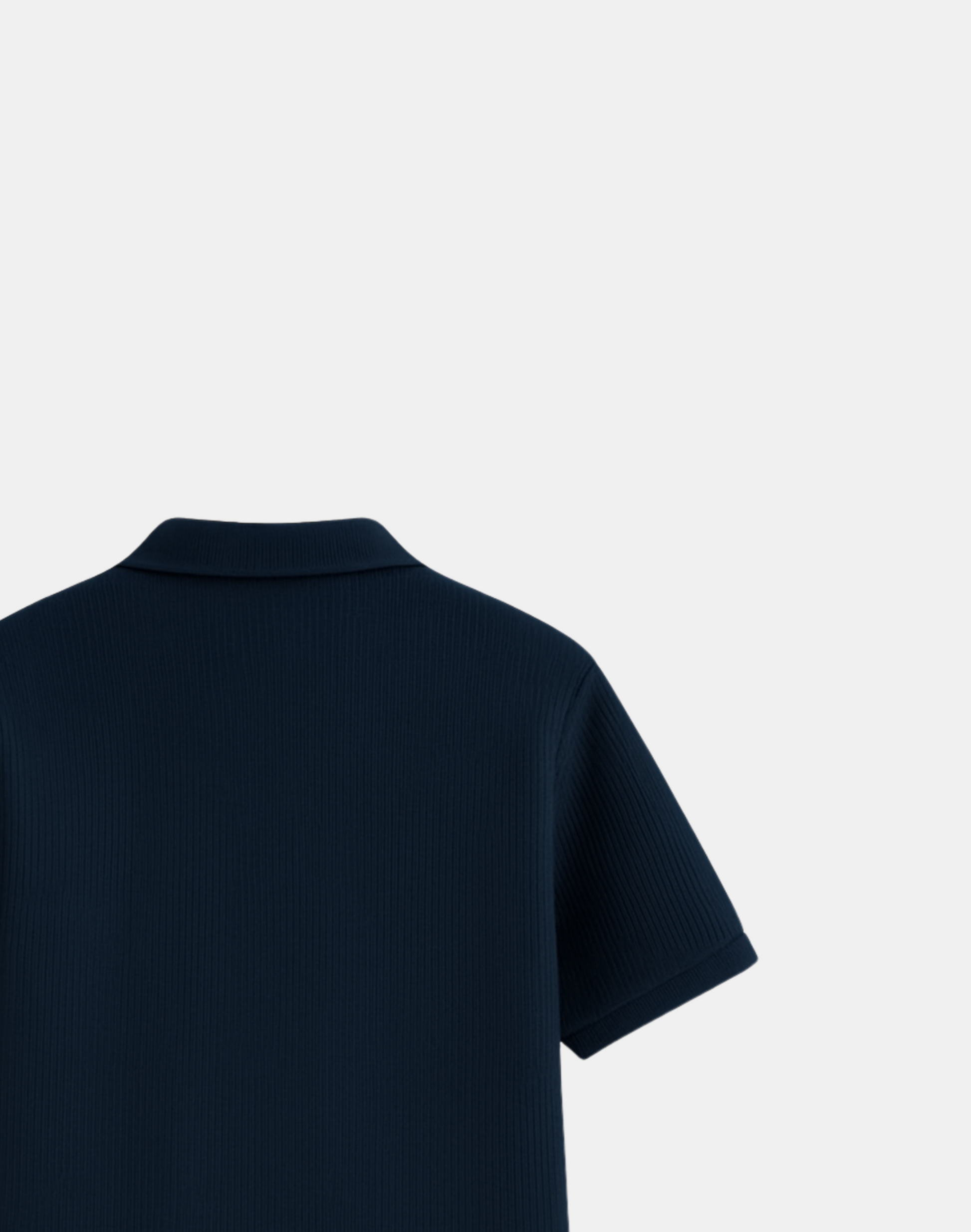 Crafted polo in micro-block drop needle knit. Clean lines, softened structure, and a texture that plays with light and shadow. Quietly tactile. Effortlessly composed