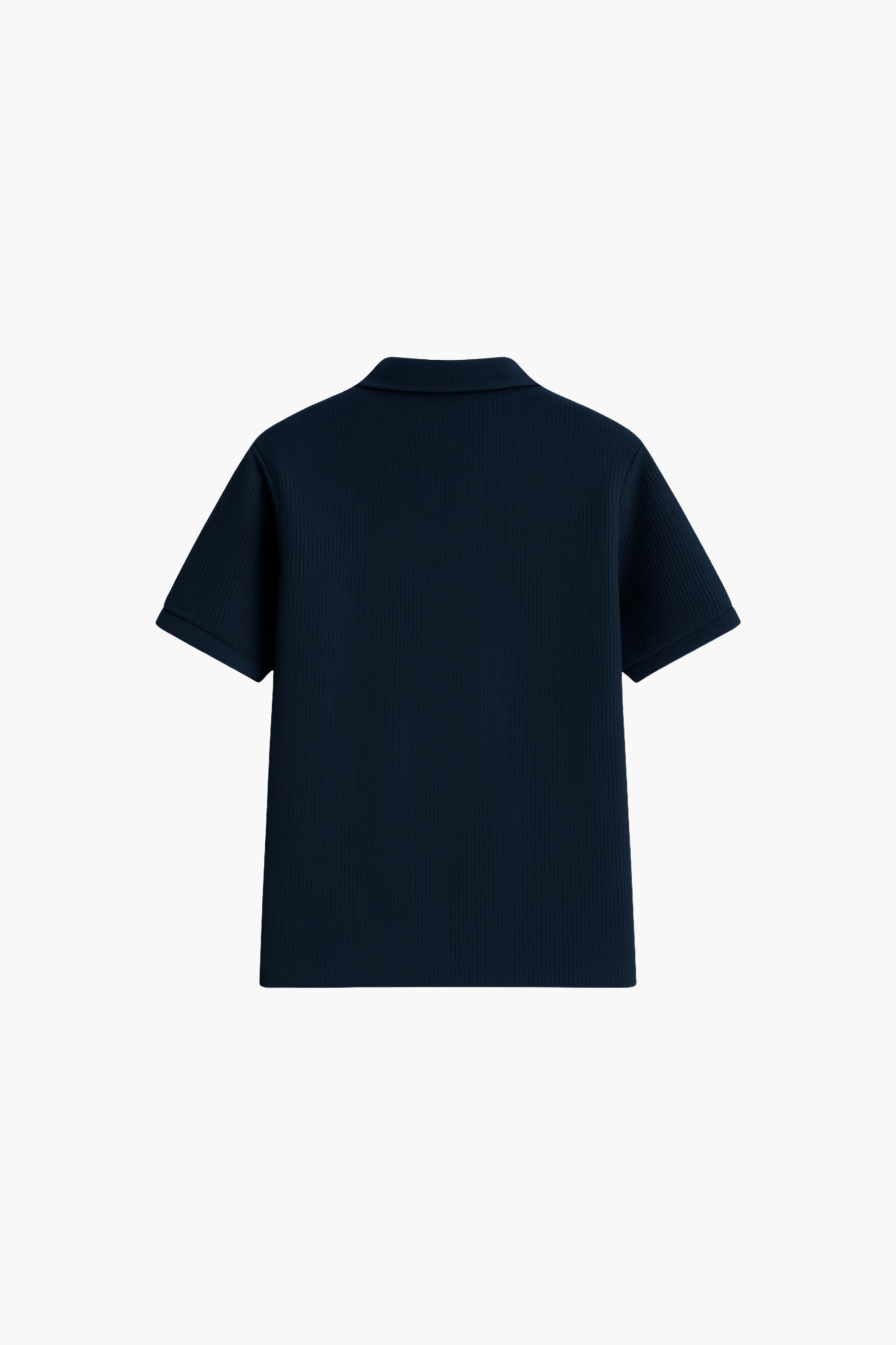 High-weight polo crafted from micro-block drop needle knit, featuring a sophisticated silhouette at the collar and hem for a refined look. The thick, textured fabric provides warmth and comfort, making it ideal for lounge wear as well as winter layering.